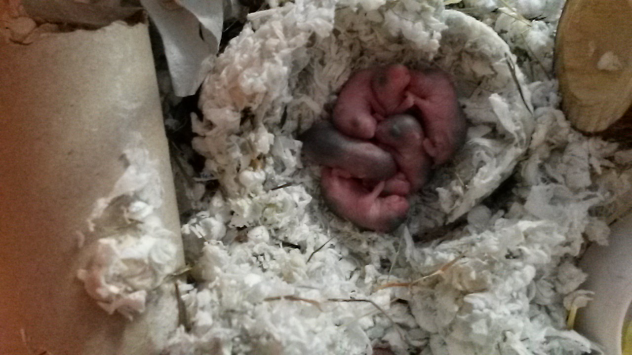 Když zjistíme, že se mláďata narodila, měli bychom přemístit misky s krmením co nejblíže k hnízdu, aby samička nemusela moc daleko a zbytečně se nestresovala. Asi 3.den od porodu se mláďatům začne tvořit pigment, 5.den už začínají konzumovat pevnou stravu a můžeme jim dopřát vlhkou zeleninu a snížit napáječku.. 10. den od porodu už otevírají oči a 14. den můžeme kompletně vyměnit podestýlku. 20 den od porodu jsou mláďata pohlavně dospělá. Během třetího týdne bychom měli mláďata nechat přivyknout lidem, ale opatrně, jsou malá a velmi čilá:)